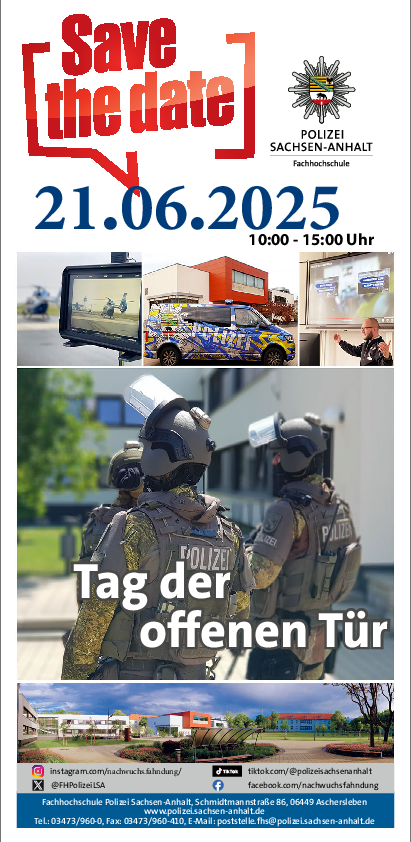ich begrüße Sie auf der Homepage der Fachhochschule Polizei Sachsen-Anhalt. Auf diesen Seiten finden Sie wichtige und interessante Informationen zu den Aufgaben und der Struktur der Fachhochschule.